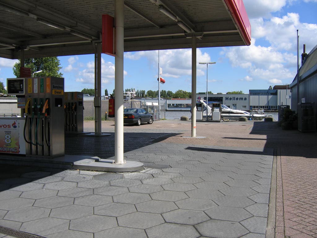 Nach der Schleuse und zwei Brücken weiter sehen wir plötzlich eine Straßentankstelle incl. Bootstankstelle.
