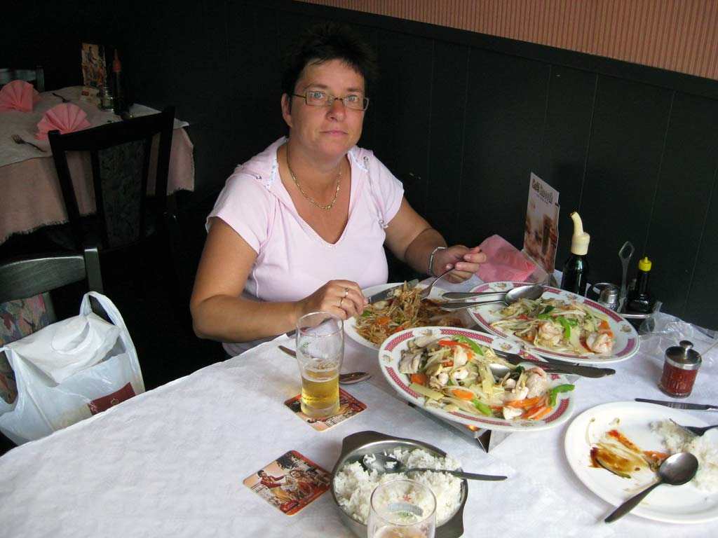 Von der Werft aus kann man die Verbindung zwischen dem Markermeer und dem Ijsselmeer sehen. Hier kann der Wasserstand zwischen den Meeren geregelt werden. Danach sind wir noch Wokken gegangen. Anders als beim normalen Chinabuffet stellt man sich dabei die rohen Zutaten zusammen. Diese bereitet der Koch dann, vor ihren Augen, frisch im Wok zu. Dazu kann man aus verschiedenen Saucen wählen. Während dem Essen fängt es schon an zu regnen. Das wird wieder ein verregneter Abend.