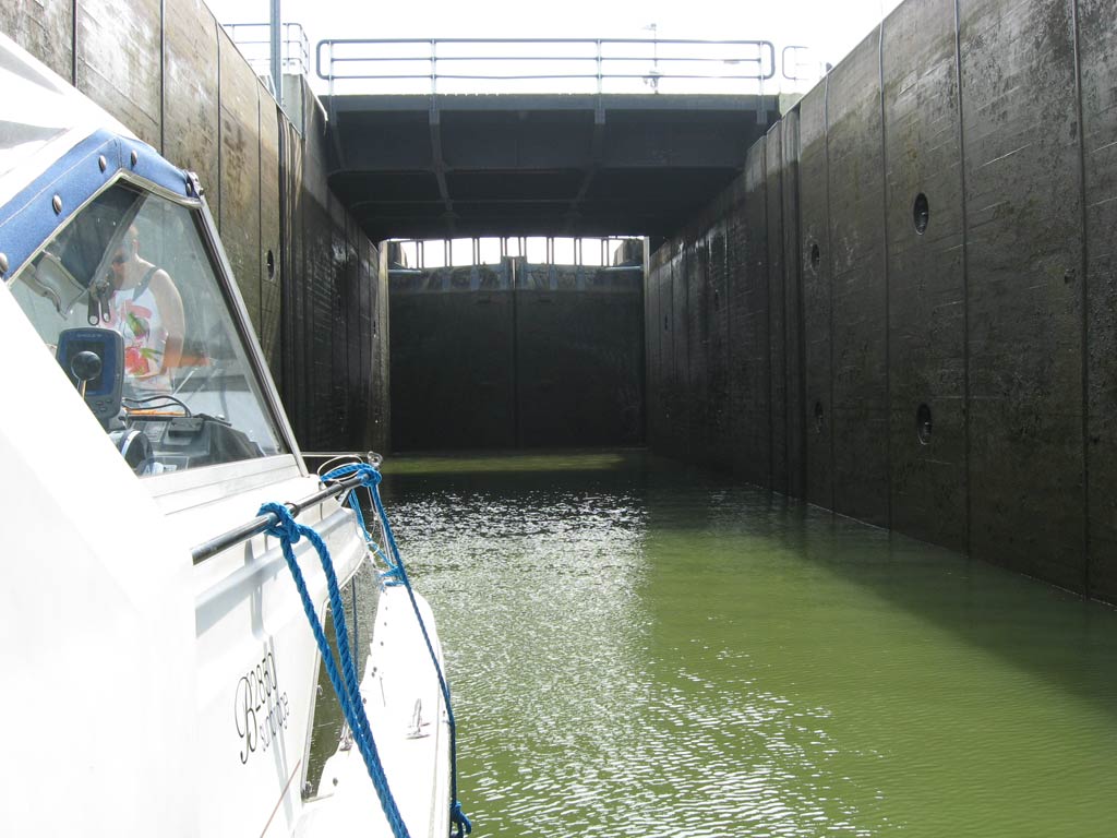 denn wir erwischen genau die Stunde am Nachmittag, wo die Schleuse geöffnet hat. Dank der genauen Törnplanung haben wir das natürlich nicht gewusst.