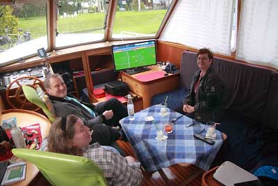 Leider fängt es auch diesen Abend wieder an zu regnen und wir müssen den Platz räumen. Unten im Boot lassen wir dann den Abend ausklingen. Der Sonntag ist dann wieder schön.