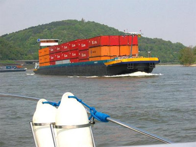Am Samstag den 06.05.06 ging es um 10:00 Uhr dann weiter Richtung Hitdorf. Erst wieder zurück durch die Schleuse Lahnstein, dann auf den Rhein und ab ging es mit ca. 45 km/h Marschfahrt, für die nächsten Stunden, den Vater Rhein hinunter. Da war einiges geboten, auf Deutschlands größter Wasserstrasse. Der Rhein erfordert eine hohe Aufmerksamkeit. Wegen der Strömung und der Berufsschifffahrt fahre ich hier nie ohne Schwimmweste.